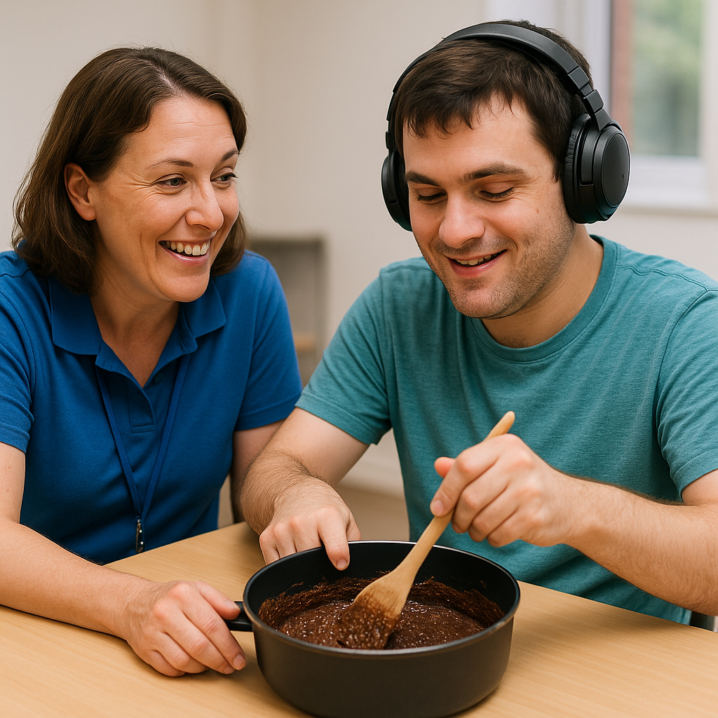 Our day program provides skill-based learning and meaningful engagement for young adults with autism, intellectual disability, or related developmental needs. Each day features structured activities, visual supports, sensory-friendly options, and community outings designed to build confidence, independence, and real-world skills. ACA campers practice communication, life skills, and social interaction in a supportive 1:1 or small-group setting.